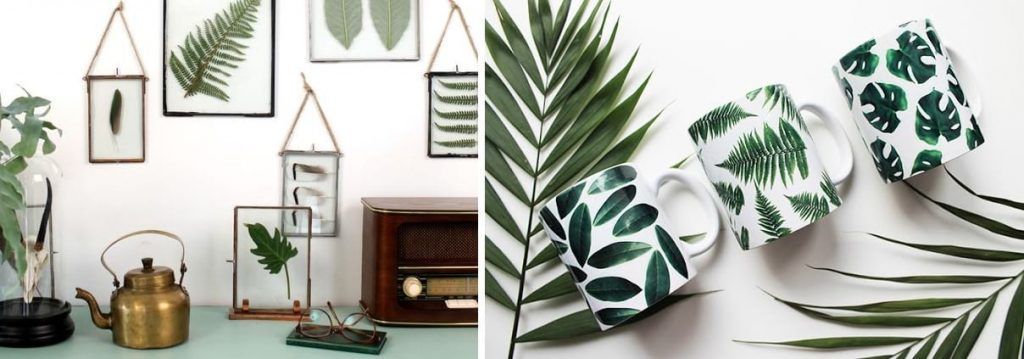 We often associate plant motifs with our school days – herb gardens prepared for nature lessons come back in a new, enlarged version. There is nothing simpler to decorate a wall than fern leaves in a simple frame. Framed graphics are also a super way to arrange walls temporarily. Leaf designs are very easily available and fit in well with Scandinavian interiors as well as more minimalist moods.