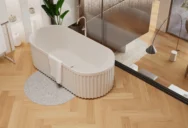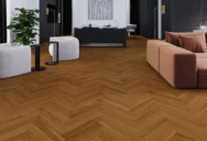 An oak floor in a classic herringbone pattern with a transparent shade introduces natural lightness and elegance. The brushed boards emphasize the wood’s structure and grain pattern.