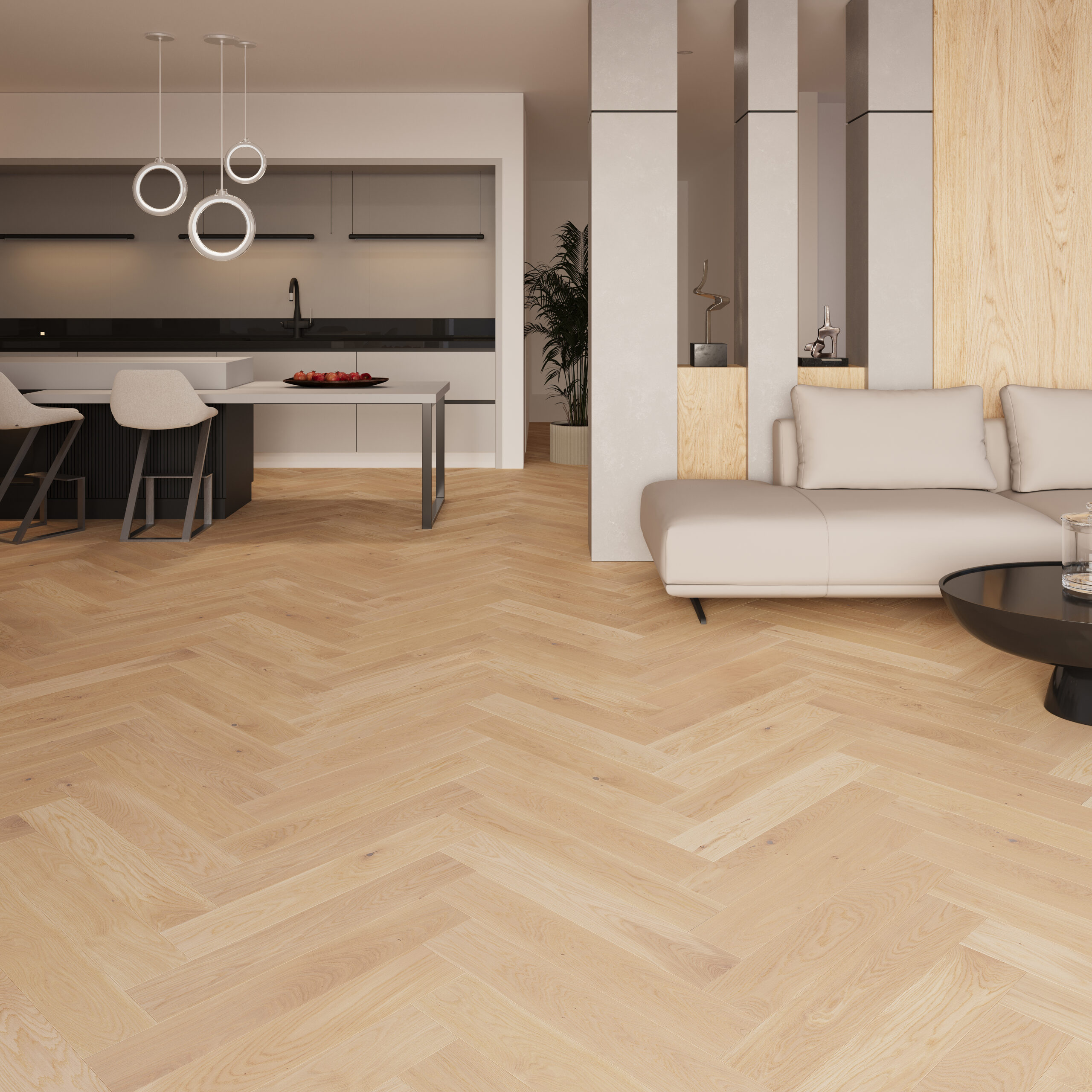 A light wood floors is a timeless trend in interior design. It visually enlarges the room, and also brightens it. So it works well even in a small space. What’s more, it adds lightness, and is a beautiful background for highlighting furniture and accessories. Light wood floors look good in Scandinavian, Provençal, industrial, English, and French interiors. A light wood floors is also a good basis for creating a modern and functional arrangement.